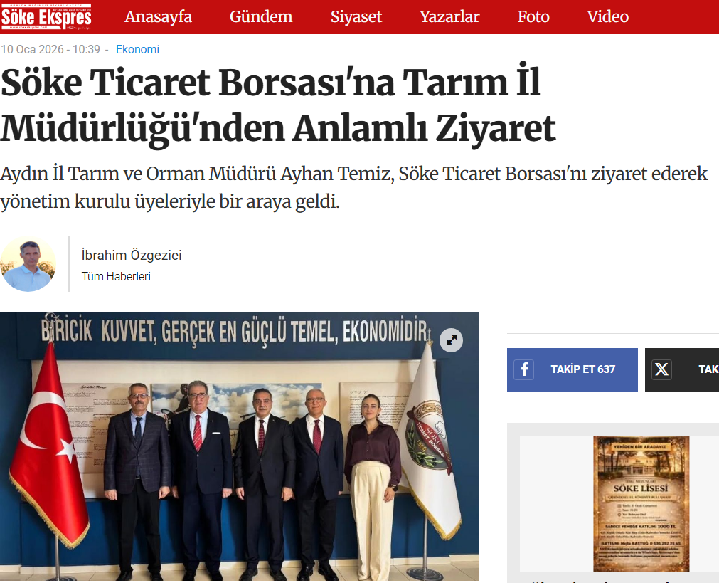 7.01.2026, Aydın Il Tarım Ve Orman Müdürü Ayhan Temiz’den Borsamıza Ziyaret