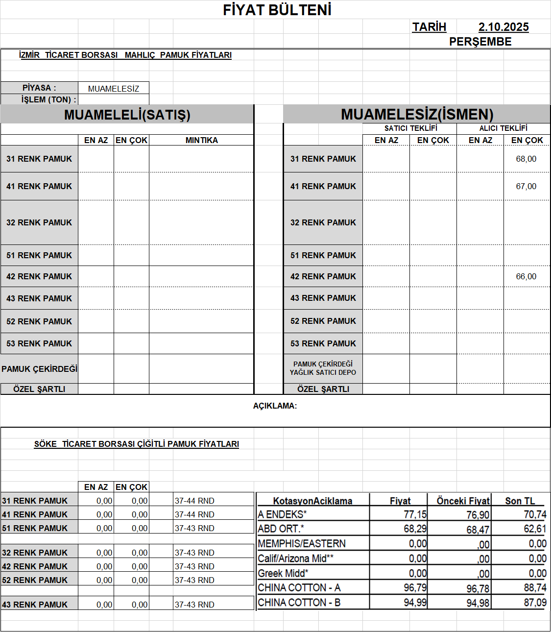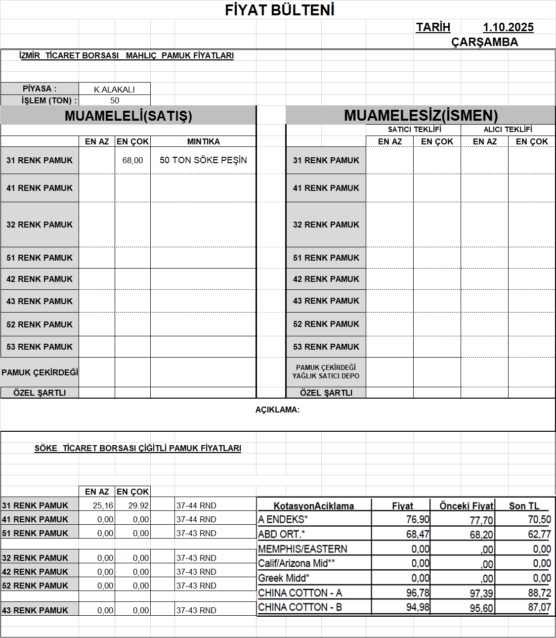 GÜNLÜK FİYAT BÜLTENLERİ2025
