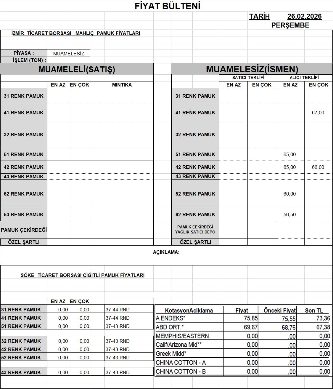 GÜNLÜK FİYAT BÜLTENLERİ2026