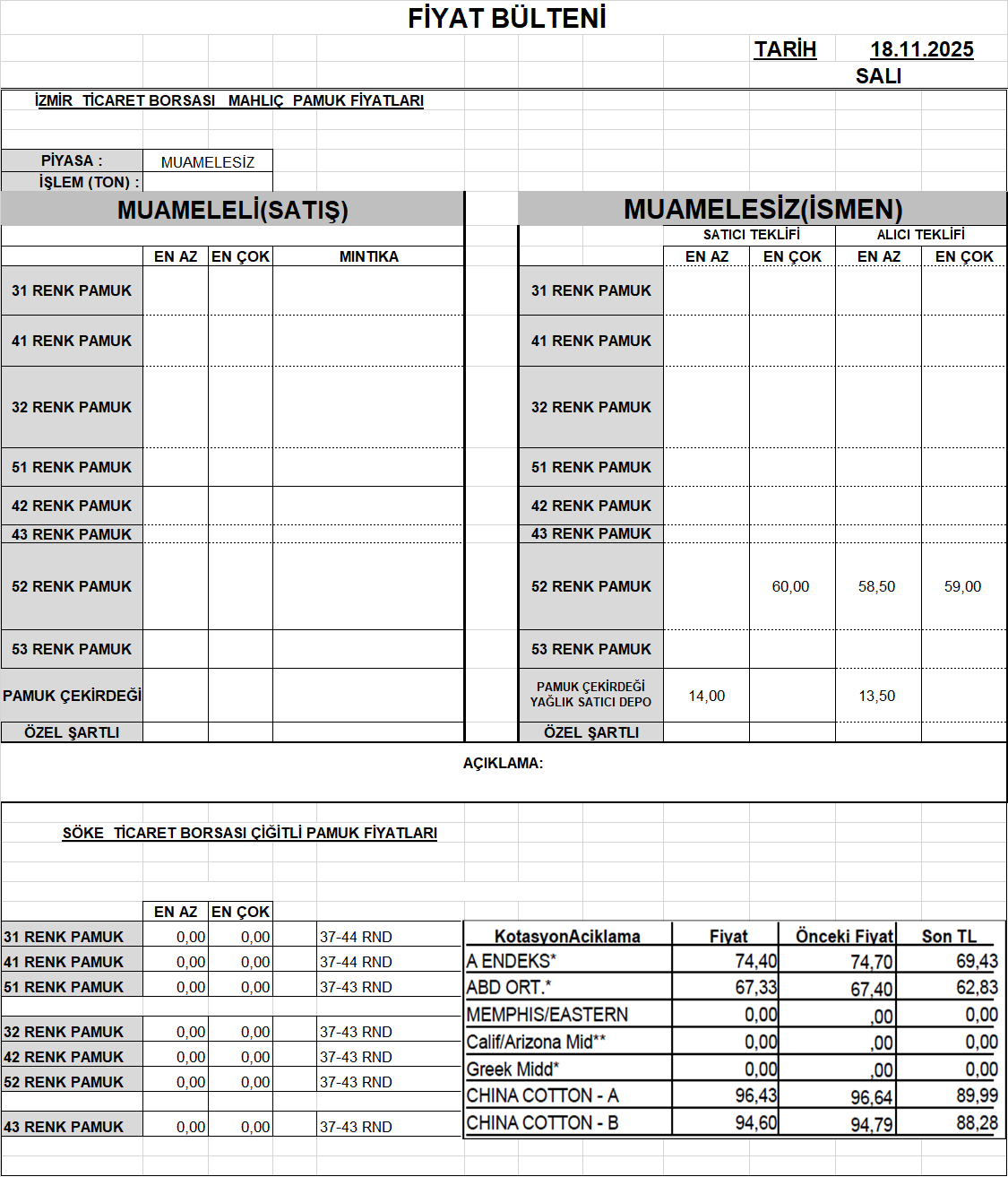 51 Renk Pamuk0,00 - 0,000,00 - 0,00