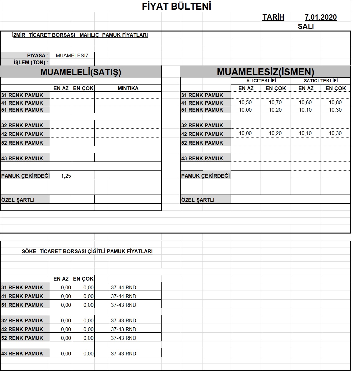 200207 Günlük Fiyat Bülteni