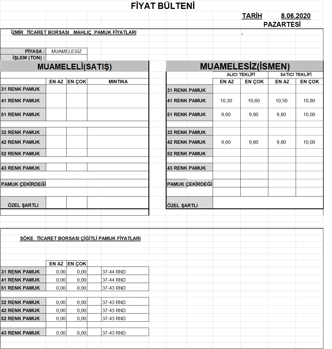200206 Günlük Fiyat Bülteni