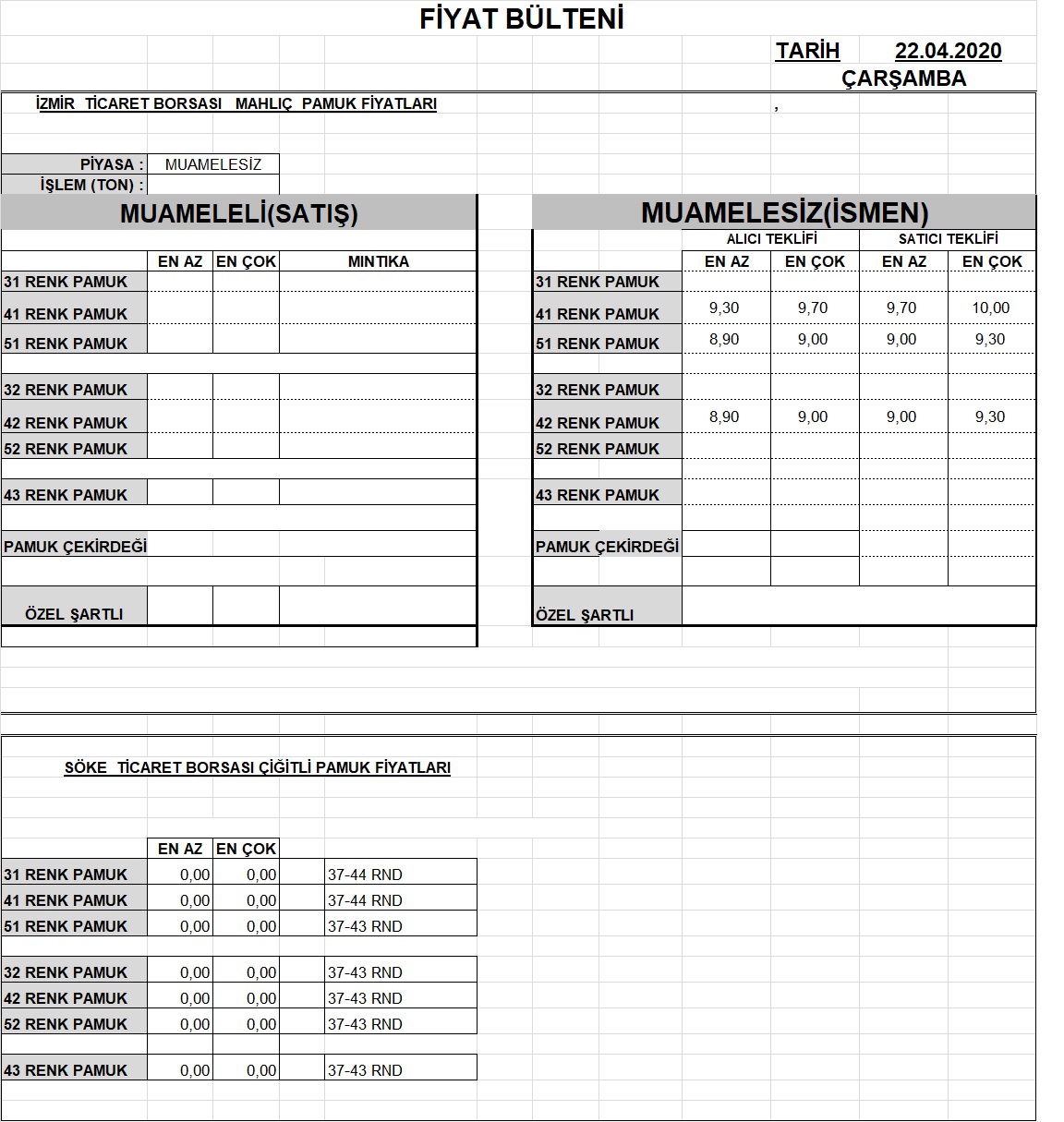 02.04.2020 Fiyat Bülteni