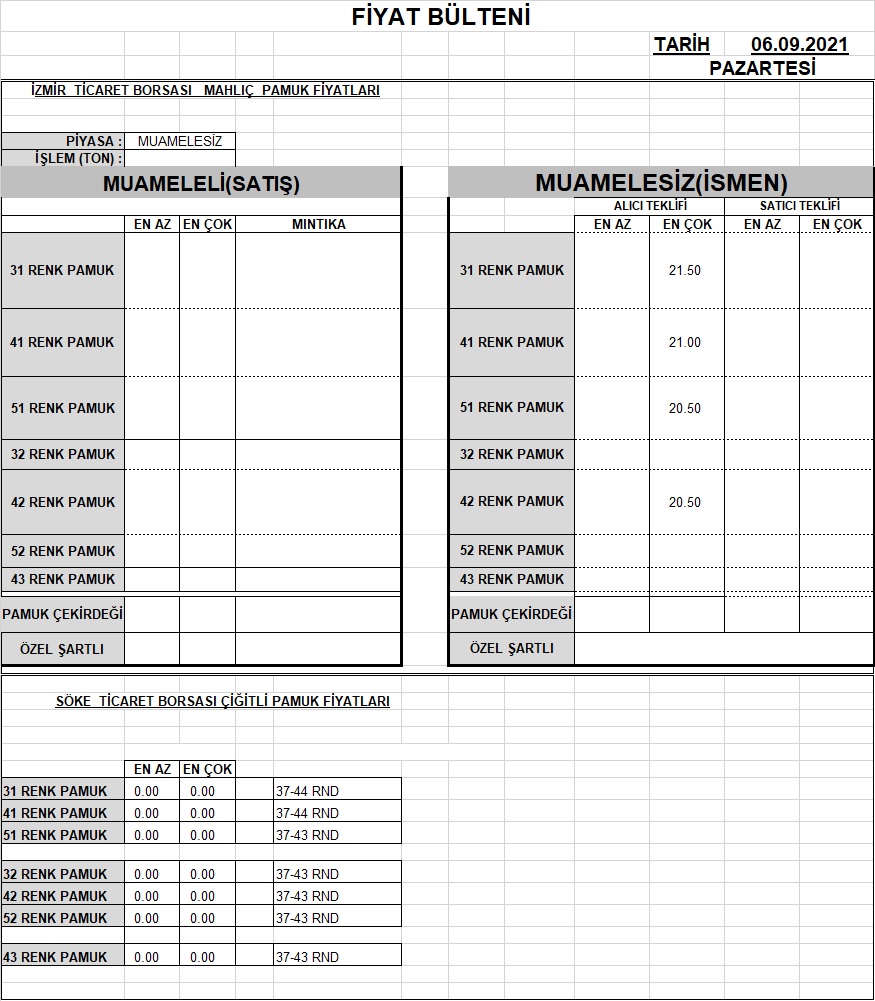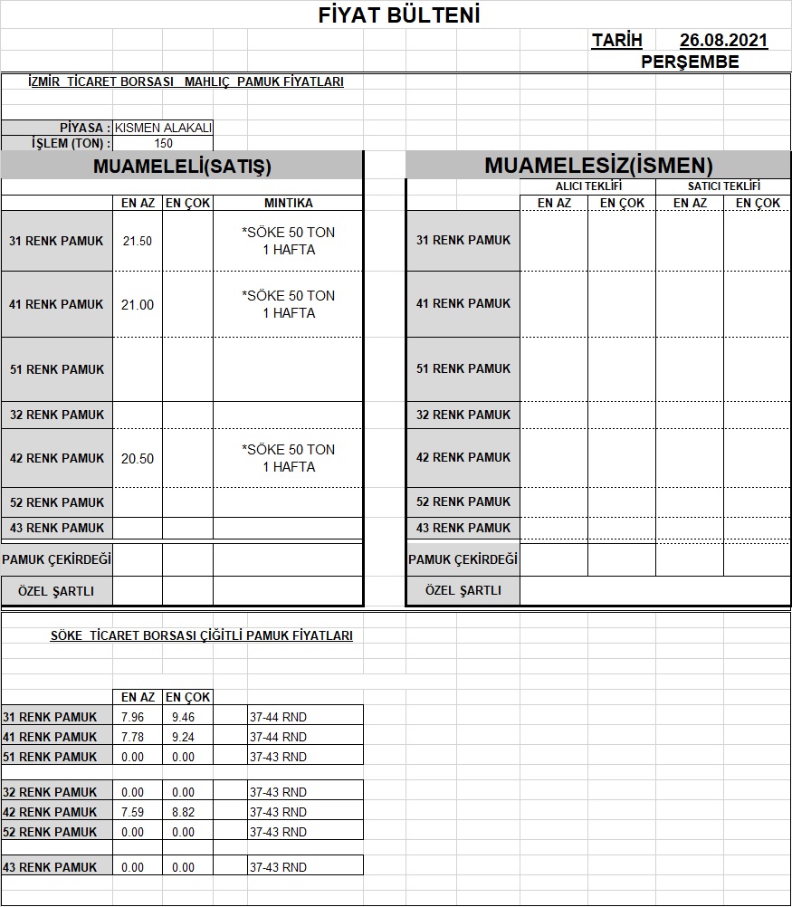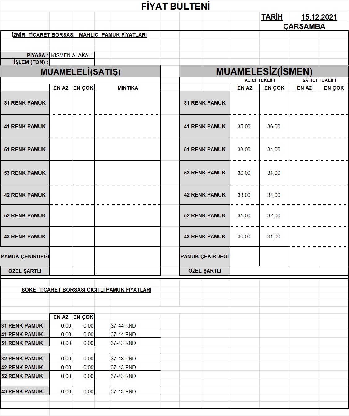 GÜNLÜK FİYAT BÜLTENLERİ2021