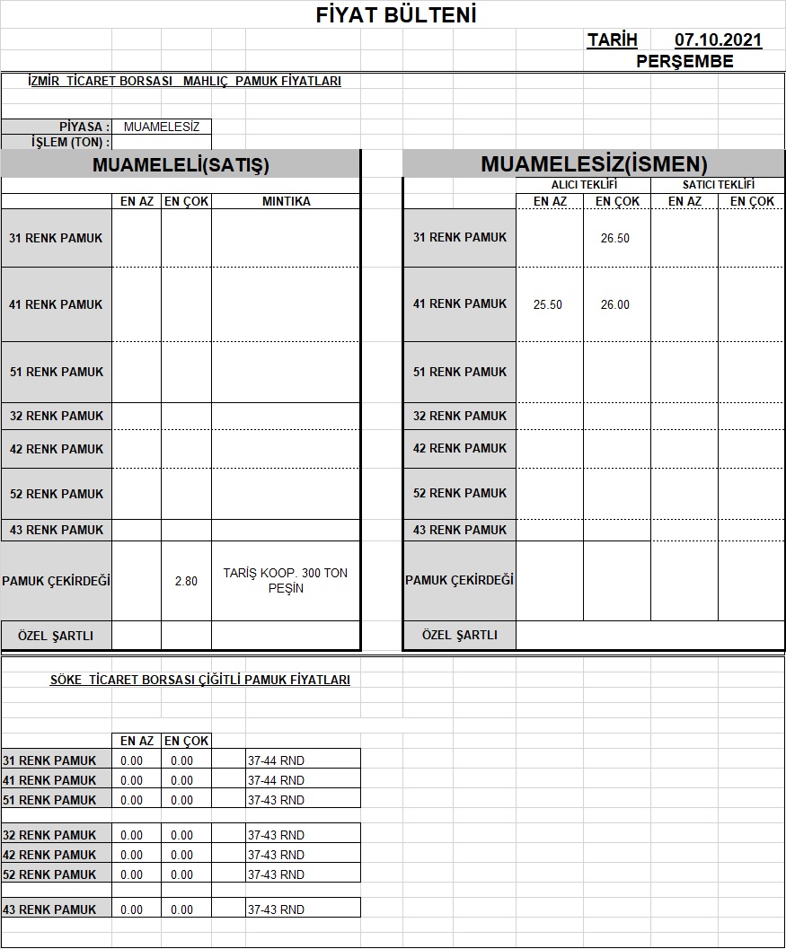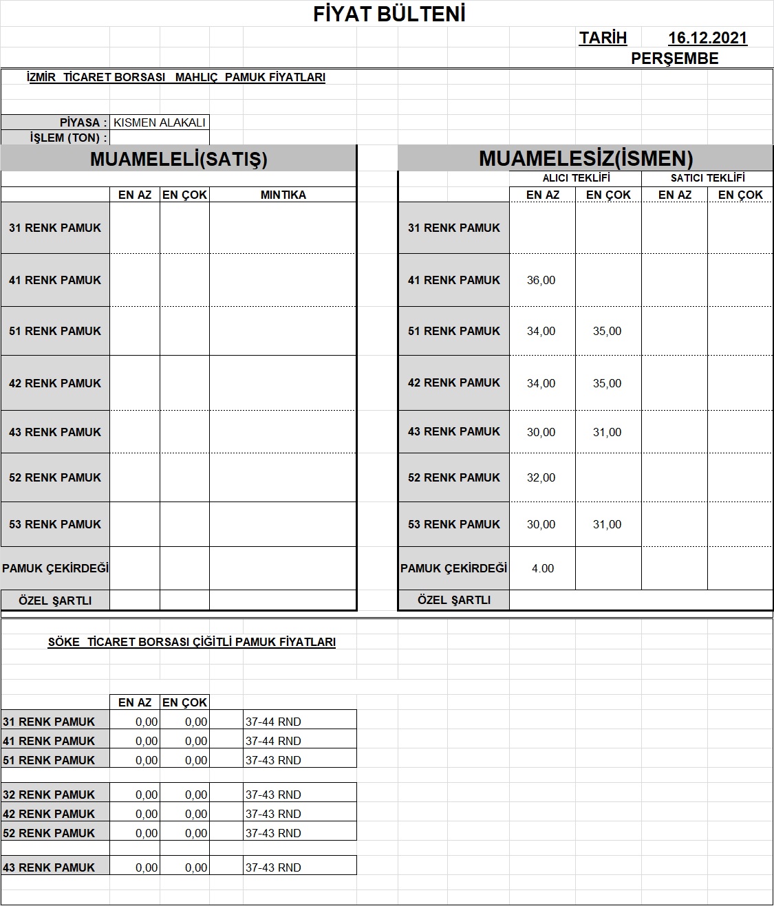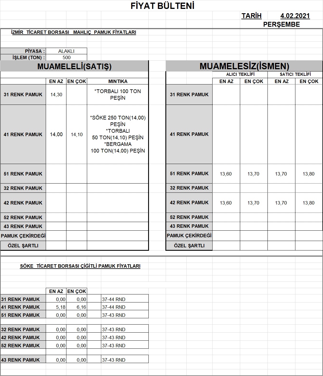 GÜNLÜK FİYAT BÜLTENLERİ2021