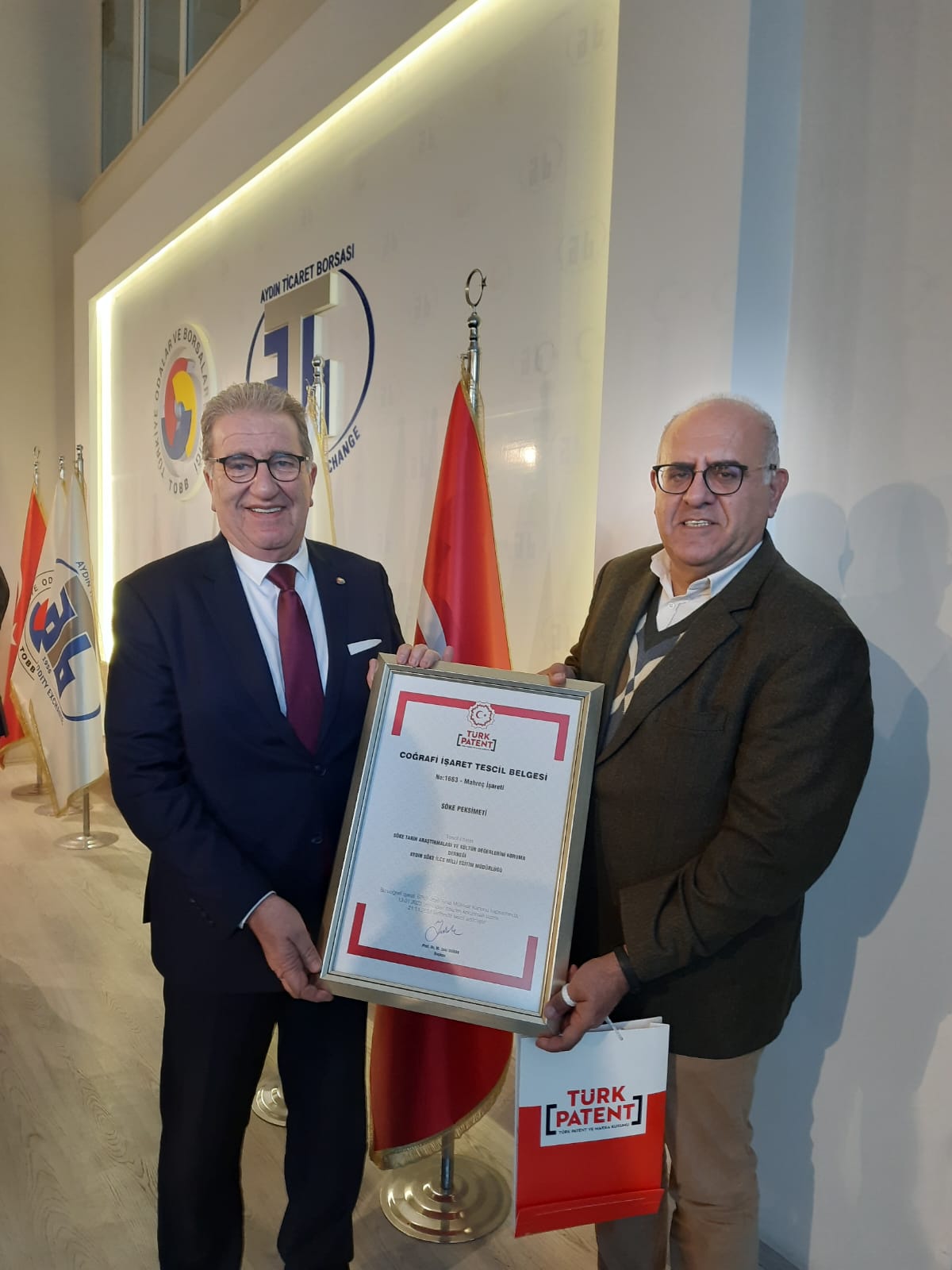 Yönetim Kurulu Başkanımız Nejat SAĞEL ve Genel Sekreterimiz Hülya ERMAN AYDOĞAN, Aydın Ticaret Borsası ile Türk Patent ve Marka Kurumu iş birliğinde gerçekleştirilen programa katıldılar. Türk Patent ve Marka Kurumu Başkanı Prof. Dr. M. Zeki DURAK ve Türk Patent ve Marka Kurumu Coğrafi İşaret Daire Başkanı Hakan KIZILTEPE'nin katılım sağladığı programda, katılımcılar arasında coğrafi işaret tescili alınan ürünlerin nasıl markalaştırılabileceği ve bu markaların ticarileştirilme stratejileri hakkında bilgi paylaşımı yapıldı. Ayrıca, coğrafi işaret tescilli ürünlerin ulusal ve uluslararası pazarlarda nasıl değer kazanabileceği ve bu süreçlerin yerel üreticiler için nasıl fırsatlar yaratabileceği konuları ele alındı.