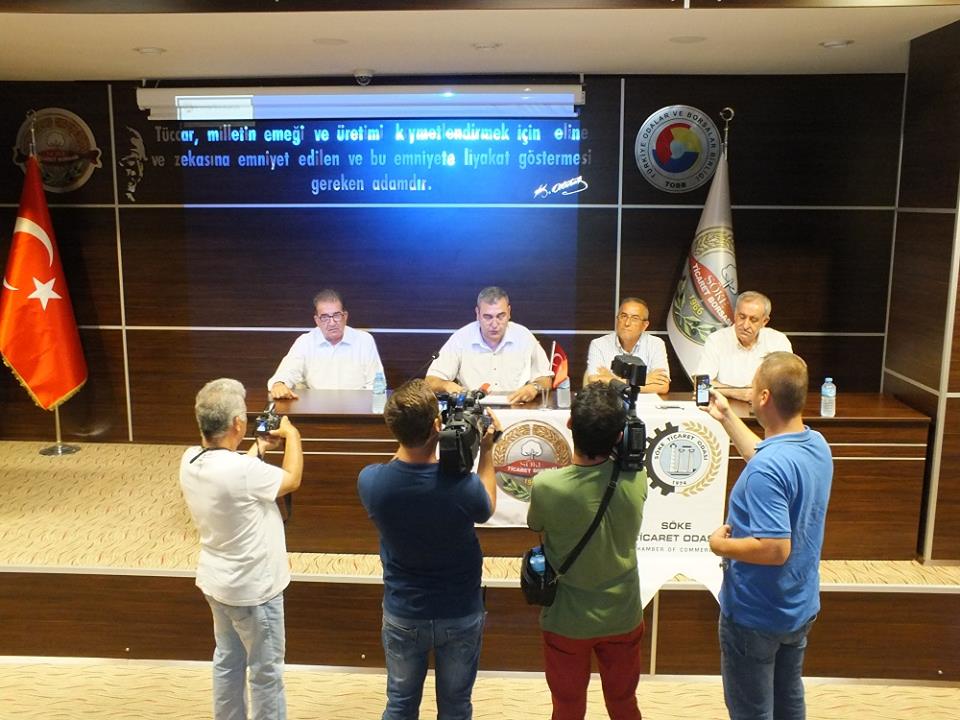 Borsamız Konferans Salonu’nda TOBB dan gelen yazıya istinaden 19.07.2016 tarihinde saat 11:00 de, ülkemizin birliğine ve demokrasimize karşı gerçekleştirilen darbe teşebbüşü sonrasında, tepkimizi yeniden göstermek ve Türk İş Dünyası olarak düşüncelerimizi paylaşmak için Söke Ticaret Odası iştiraki ile basın toplantısı düzenledik. Borsamız Başkanı Salih Deniz GÜNAL ve Söke Ticaret Odası Yönetim Kurulu Başkanı Haluk KUTLAY'ın yaptığı konuşma şöyledir;